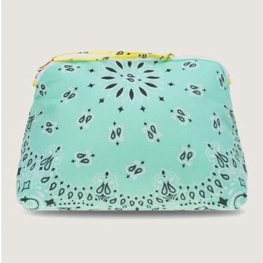 バンダナ生地にワンポイントの刺繍がかわいいジップポーチ