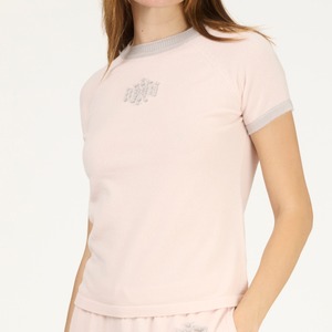 BARRIE THISTLE LOGO CASHMERE TEE LIGHT PINK/GREY