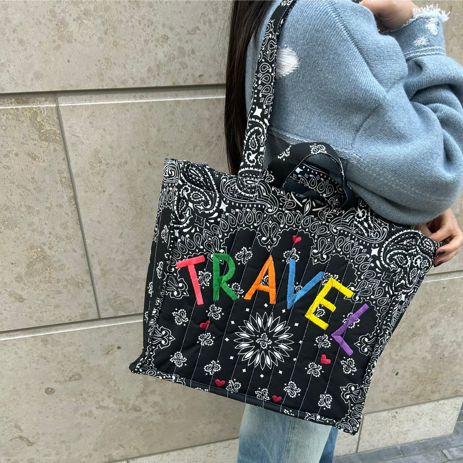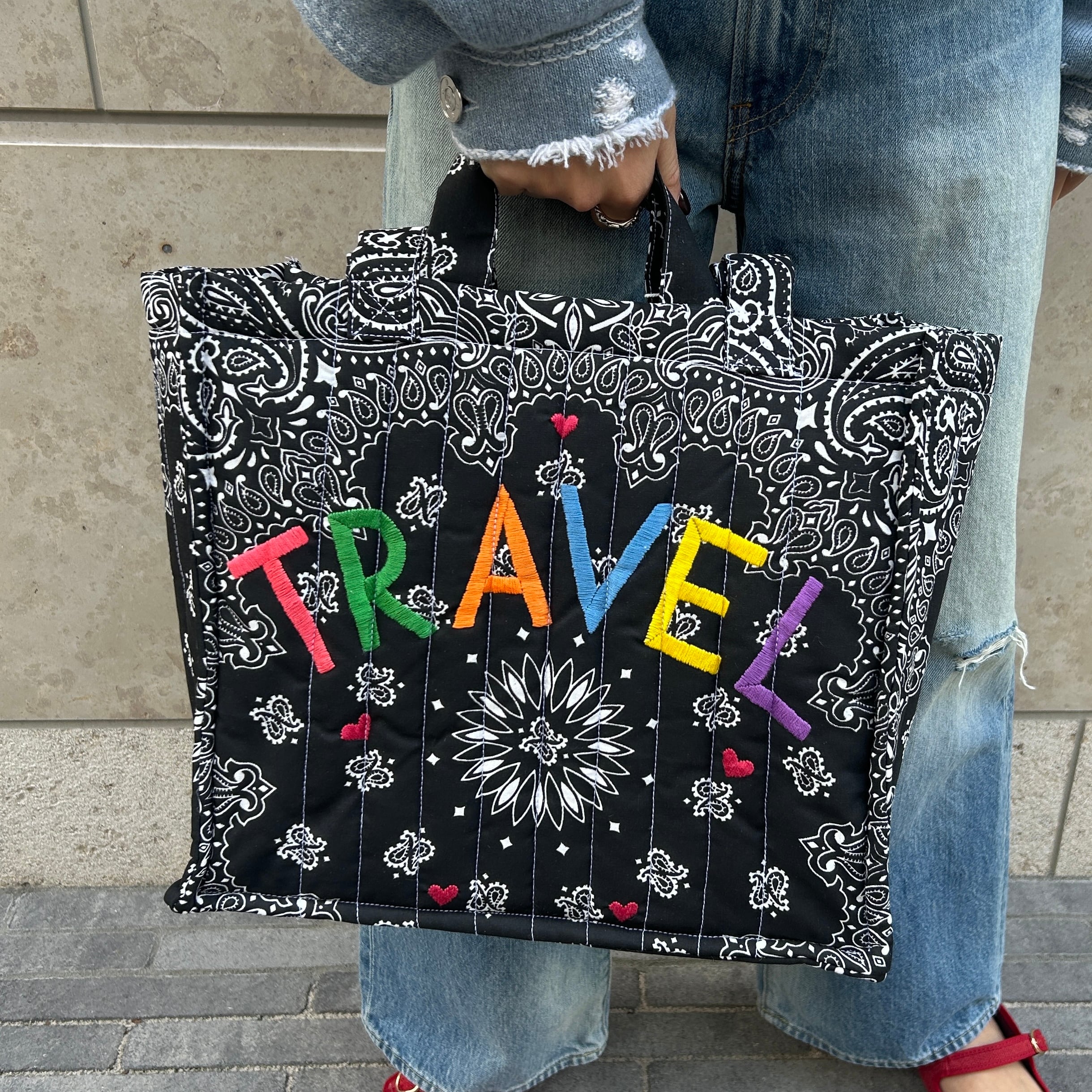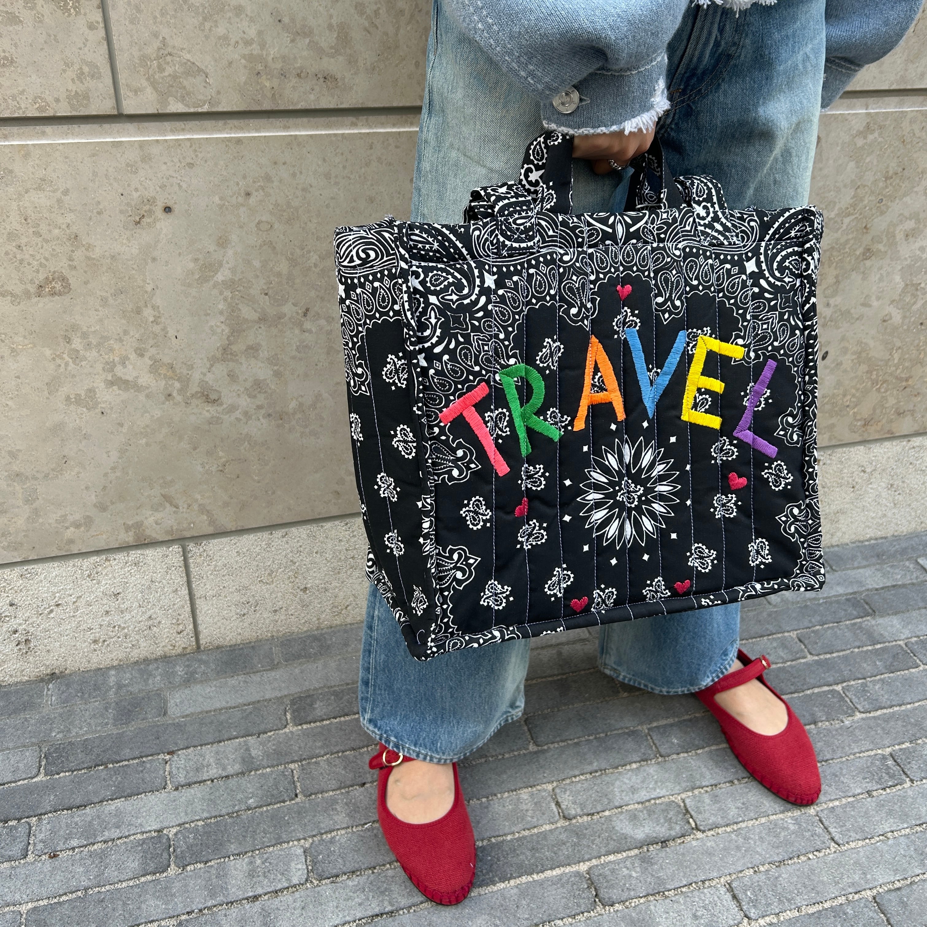 Quilted Medium Cabas Tote”TRAVEL”