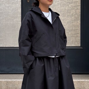 シーズン問わず着用可能なポリエステル素材のフード付きブルゾン