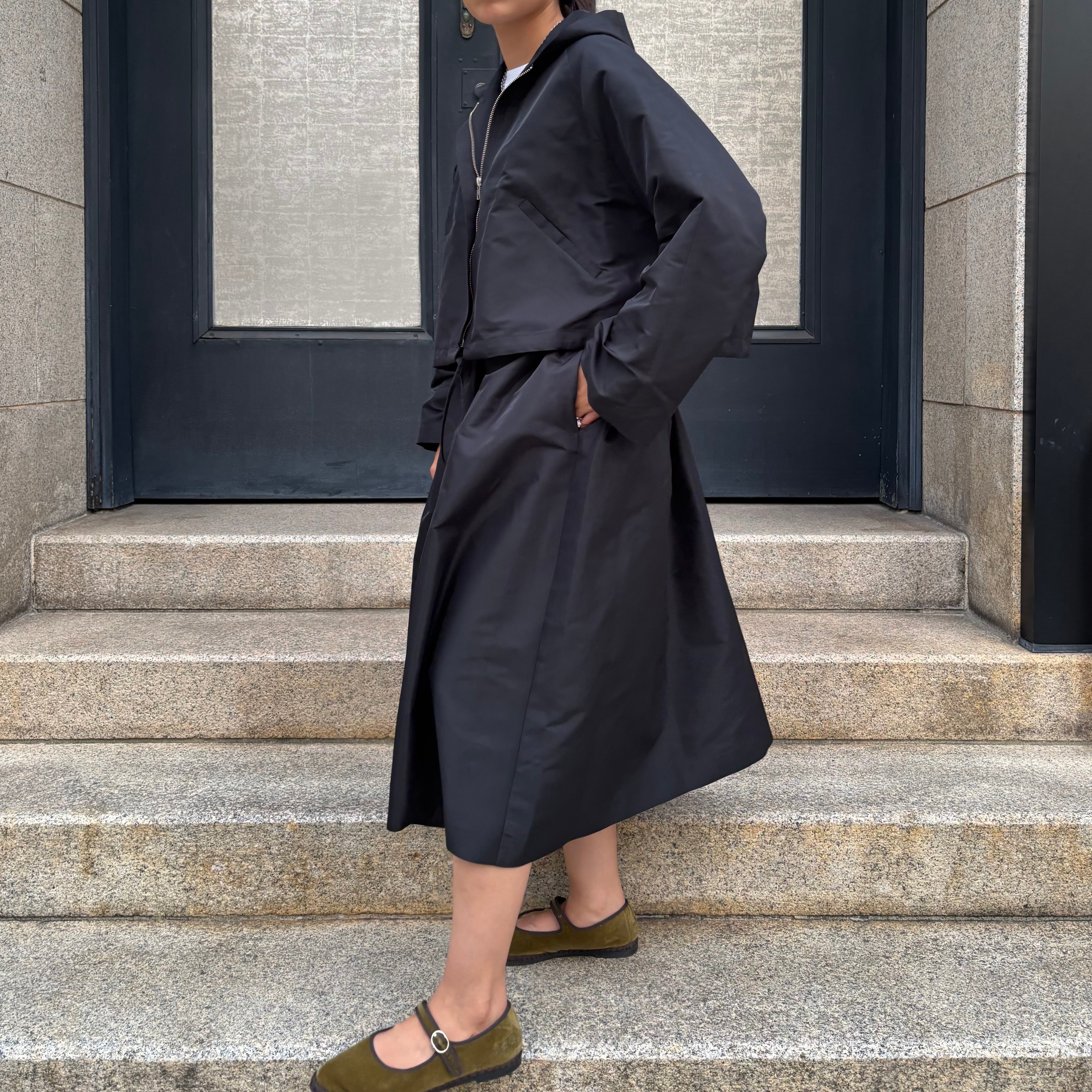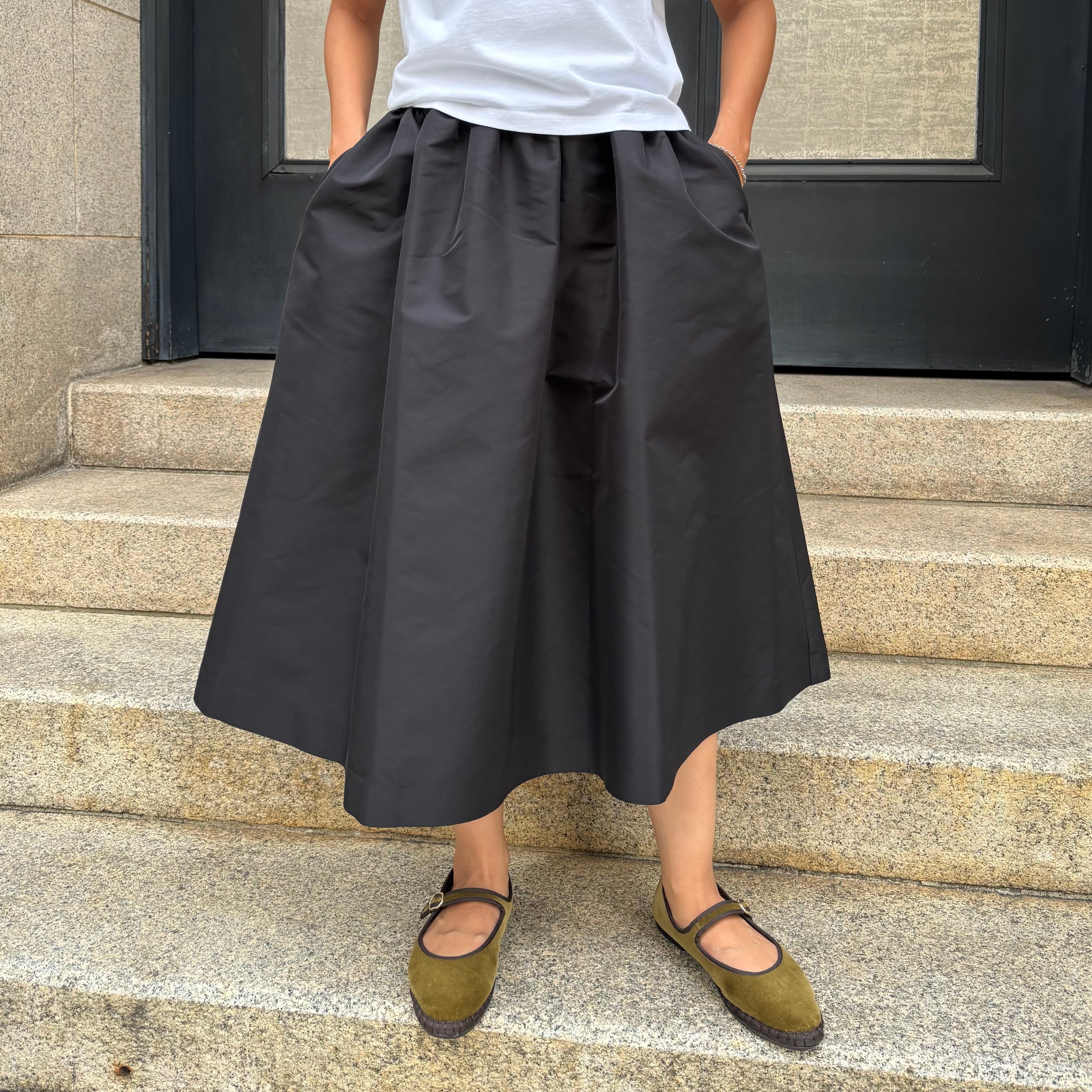 LES YEUX POLYESTER FLARE SKIRT BLACK