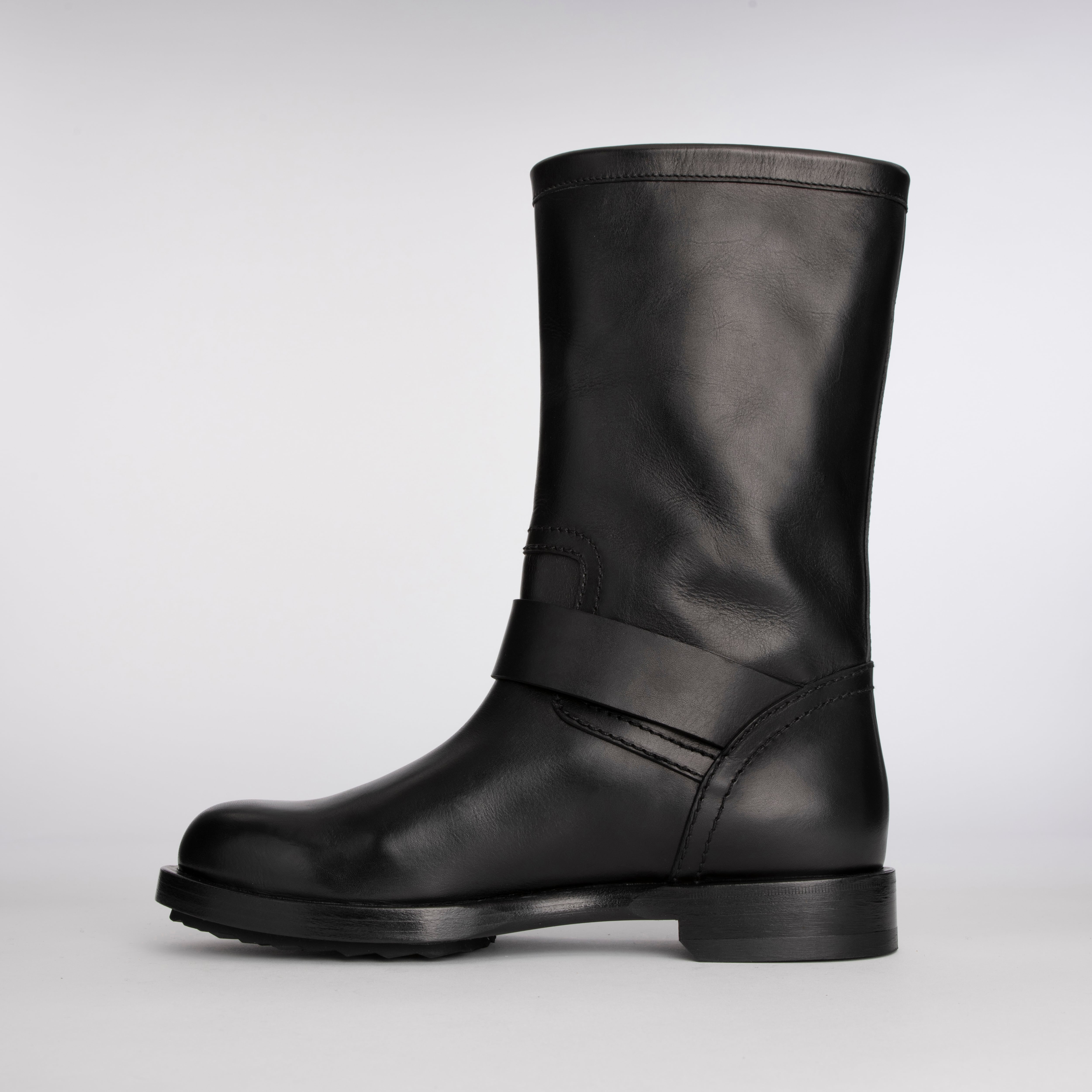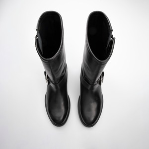 バイカースタイルにインスパイアされたこのブーツは、クラシックなスタイルにモダンでエレガントなひねりを加えて再解釈。力強い個性を持つ一足です。