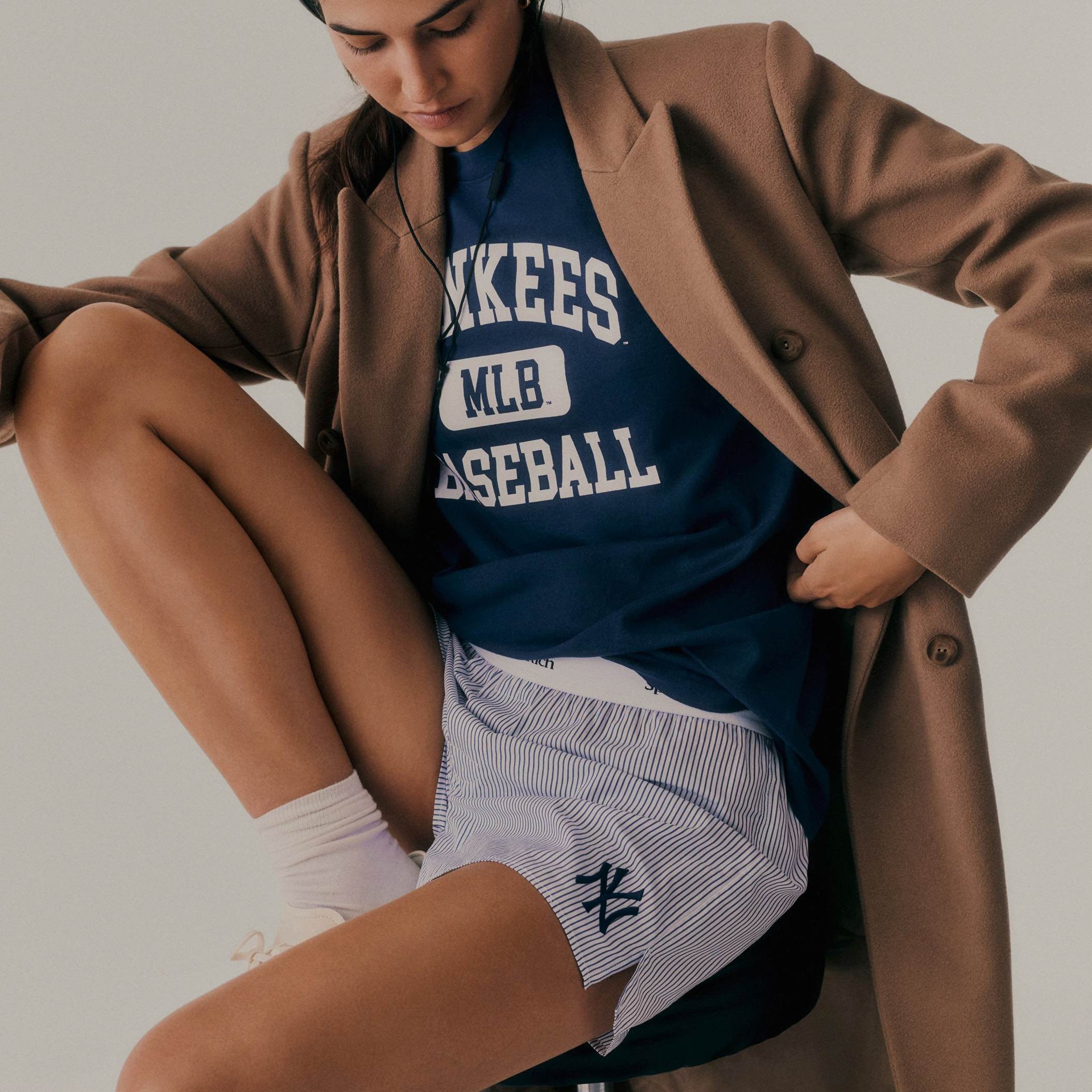 Sporty&Rich Yankees Serif Boxer Short Navy Striped