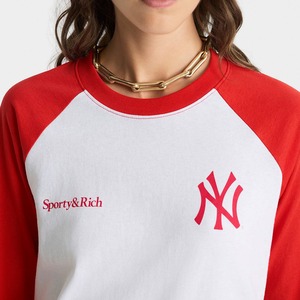 Sporty&Rich Yankees Serif Baseball Tee WHITE/RED