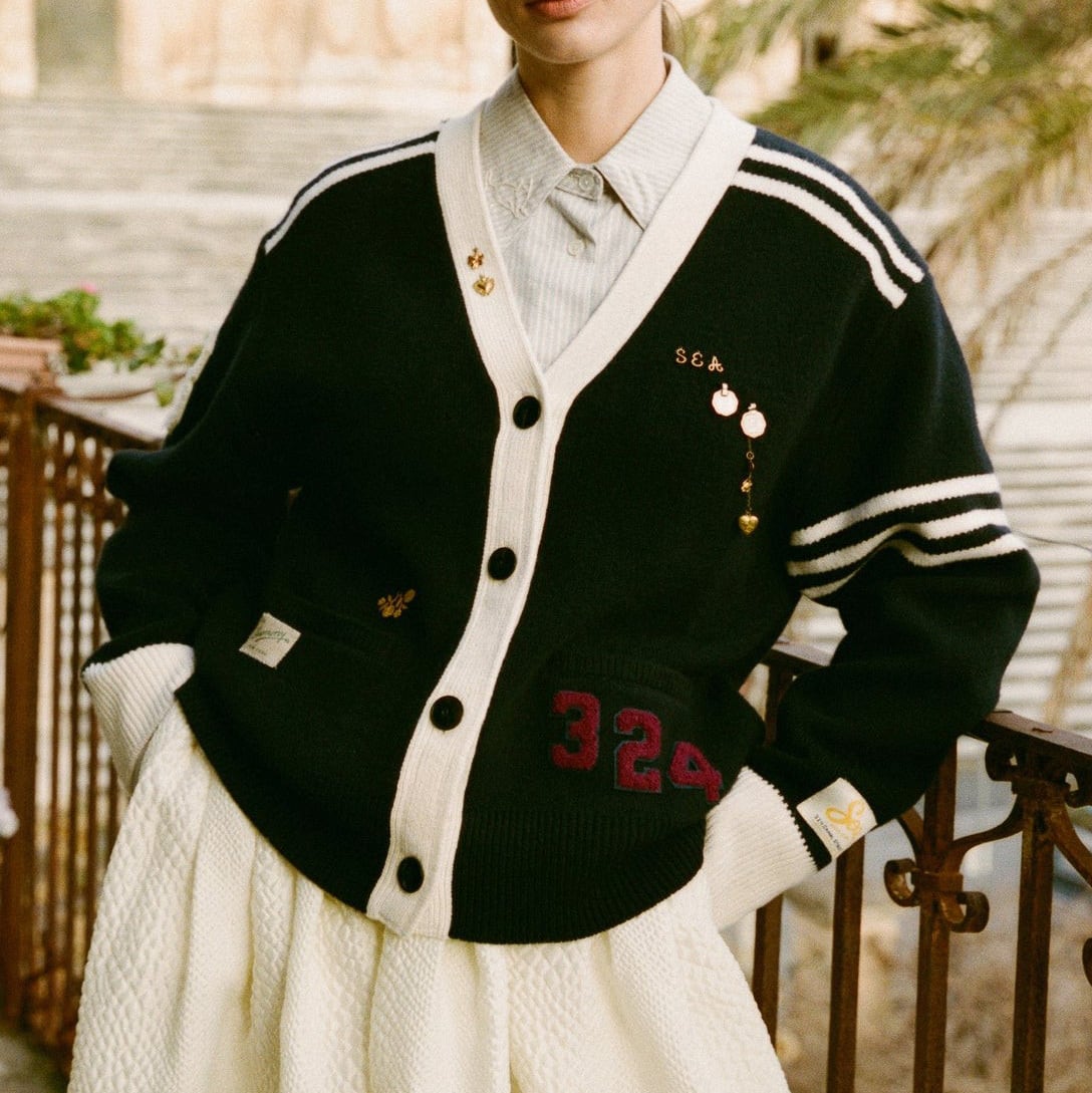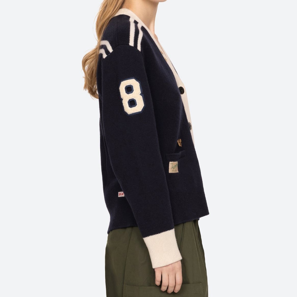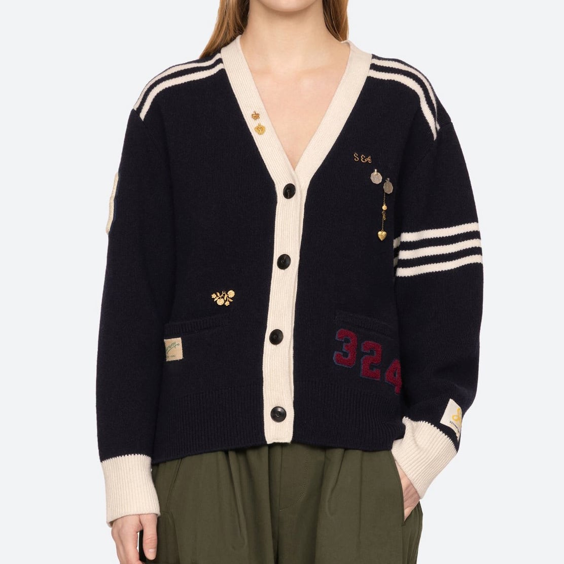 SEA NY ARTHER VARSITY KNIT CARDIGAN NAVY