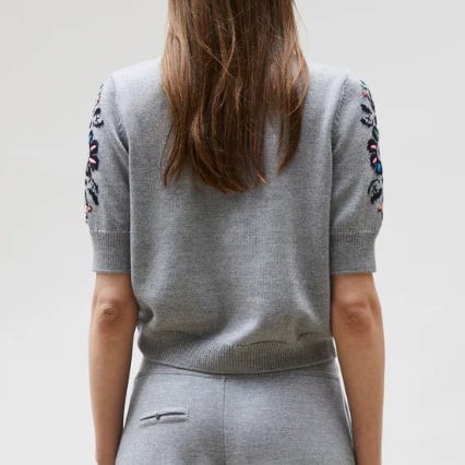鮮やかなネオンタッチの刺繍カラーのコントラストが素敵な半袖ニット