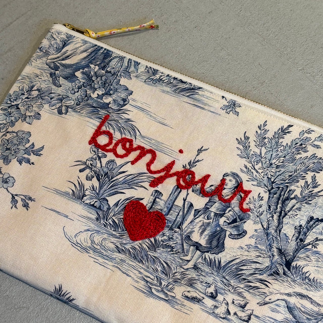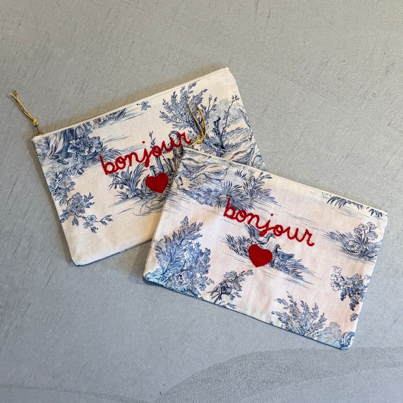Toile de Jouy POUCH LARGE BLUE/bonjour