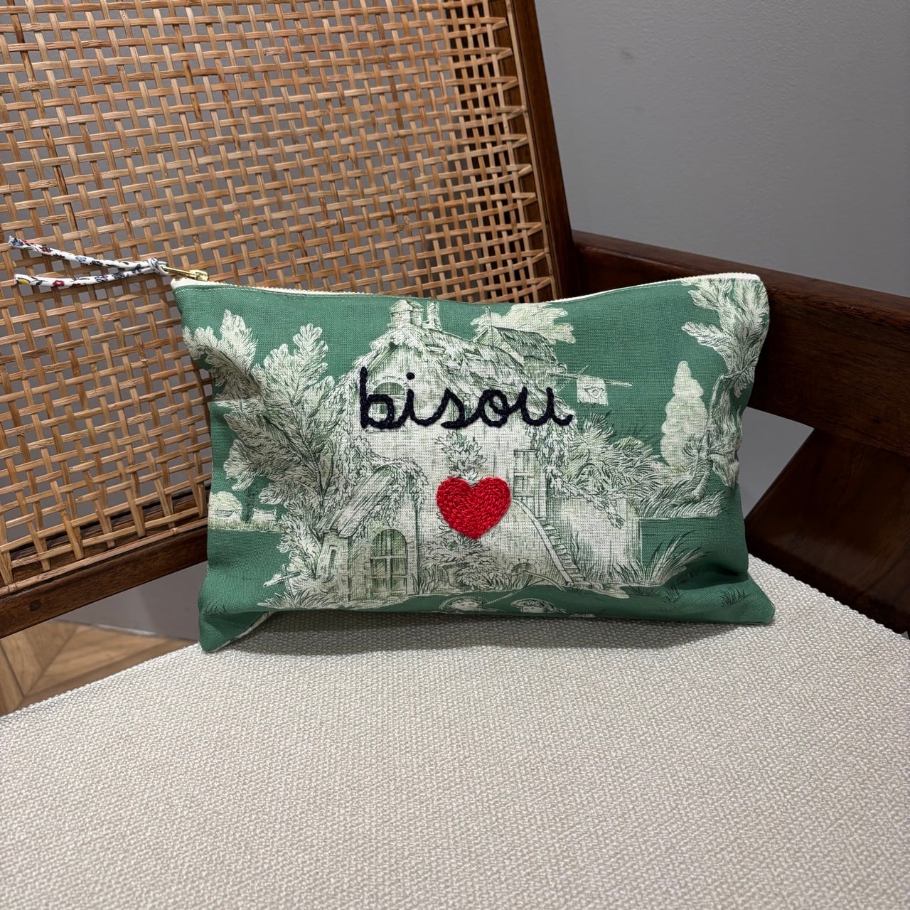 Toile de Jouy POUCH LARGE GREEN/bisou
