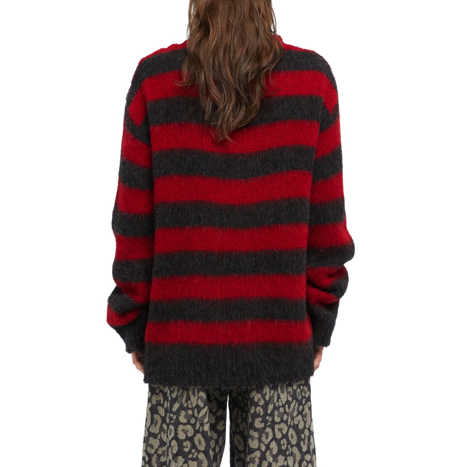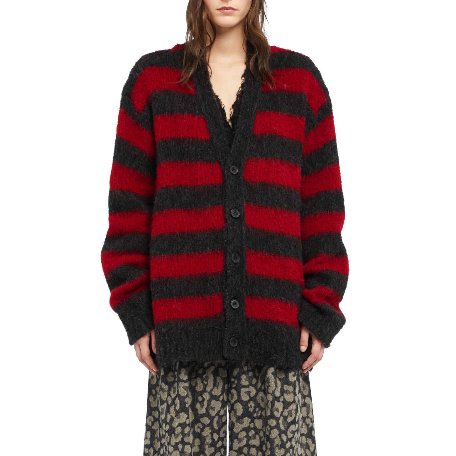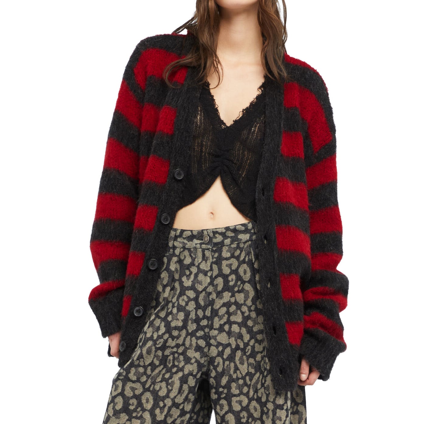 ALANUI GRUNGE STRIPES CARDIGAN RUBY CHARCOAL