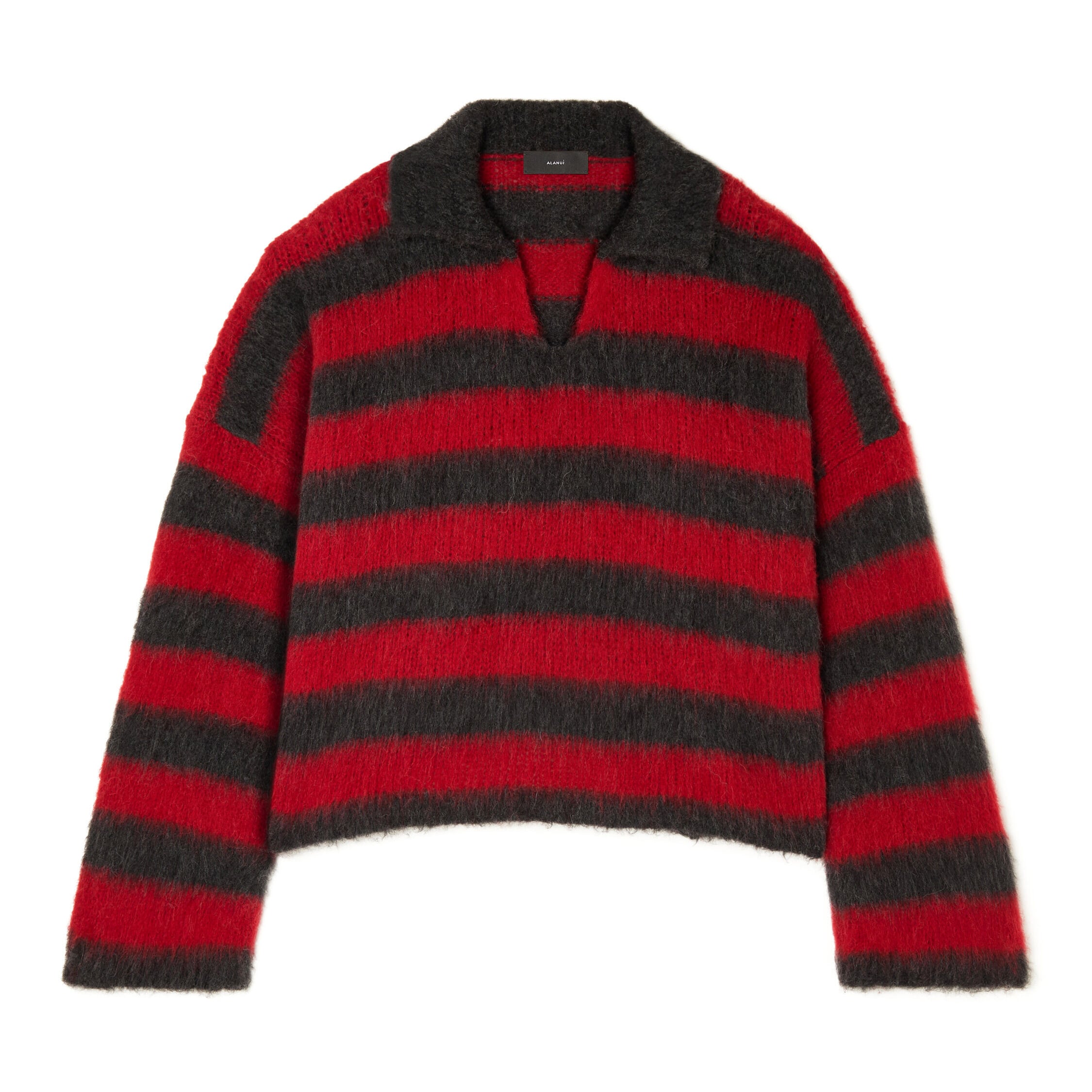ALANUI GRUNGE STRIPES POLO RUBY CHARCOAL