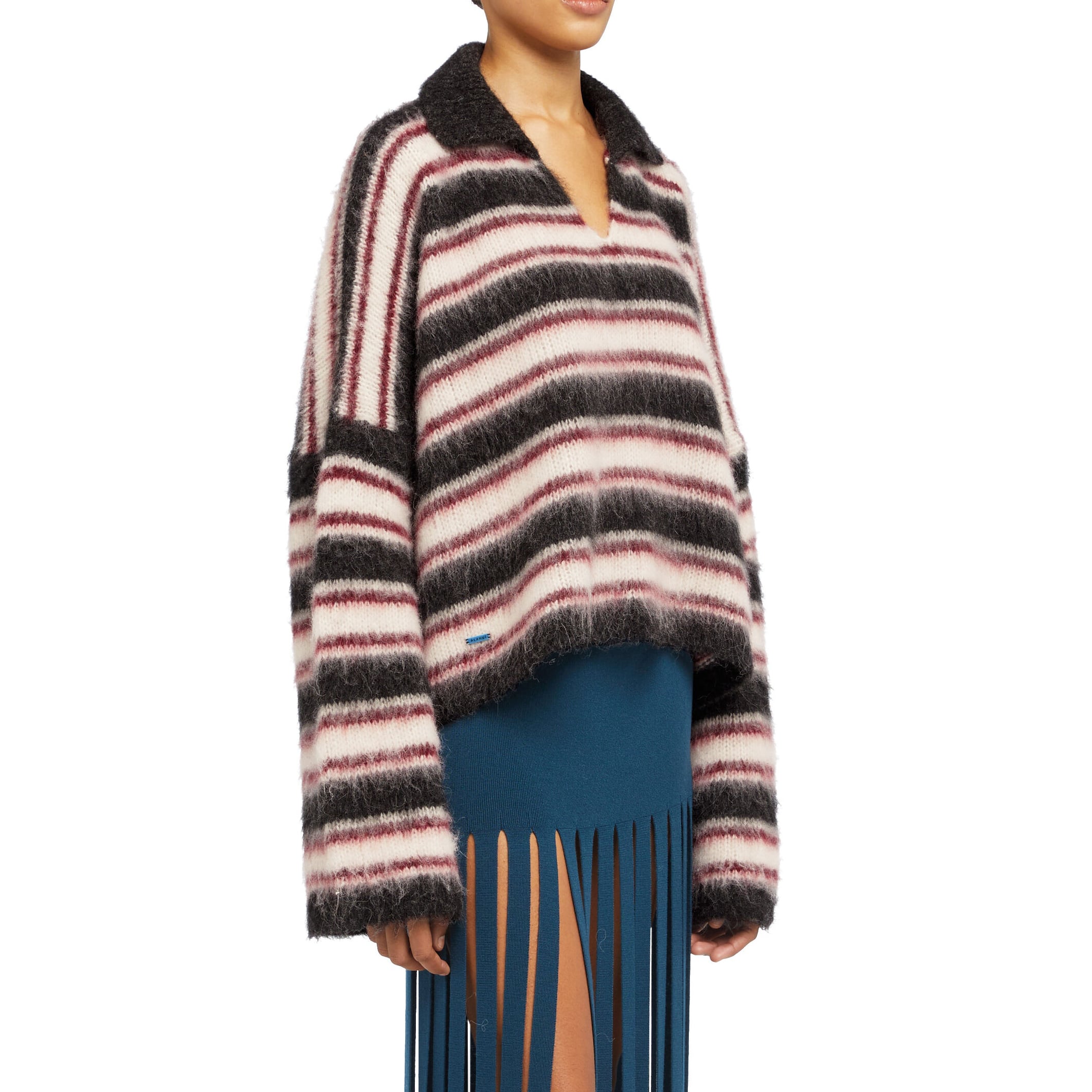 ALANUI GRUNGE STRIPES POLO CHARCOAL RUBY