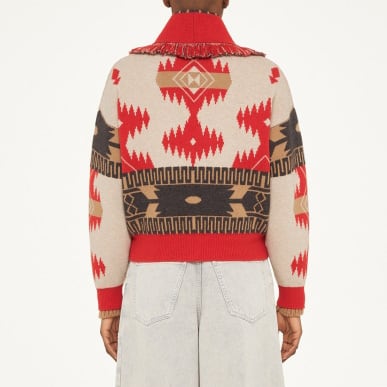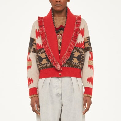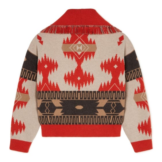 兄妹デュオデザイナーが立ち上げた”ALANUI”。色鮮やかなジャガードのオーバーサイズなニットカーディガンは、アメリカンインディアンをインスピレーション源としてデザインされたものです。
