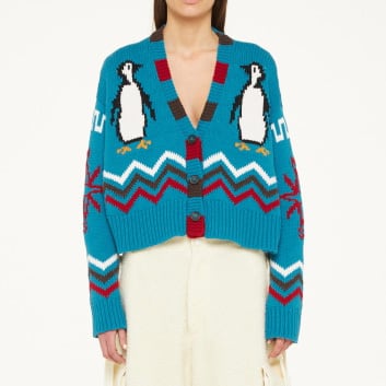 ALANUI FOR THE LOVE PENGU CROP CARDIGAN SKY MULTICOLOR