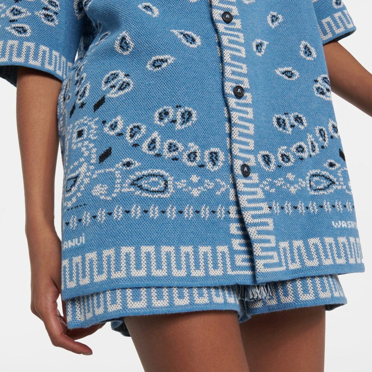 ALANUIのシグネチャーであるダブルジャカード編みのバンダナ柄ニットショーツ