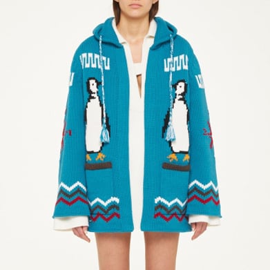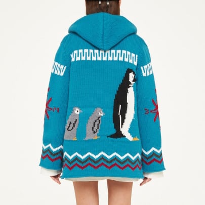 ALANUIが提案するアイコニックなペンギンモチーフのニットフーディ