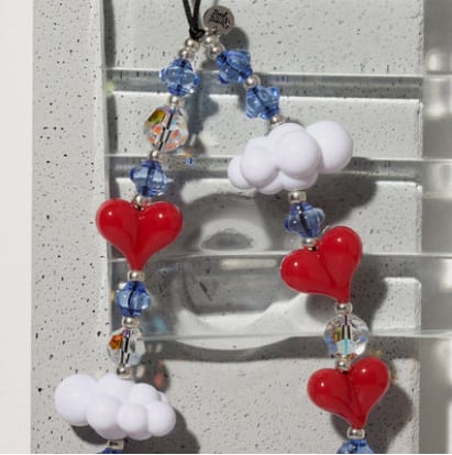 クリスタルやアクリル、ガラス、樹脂ビーズ、耐久性のあるサテンコードを使用し強い耐久性。