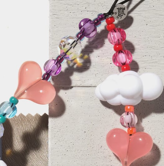 クリスタルやアクリル、ガラス、樹脂ビーズ、耐久性のあるサテンコードを使用し強い耐久性。