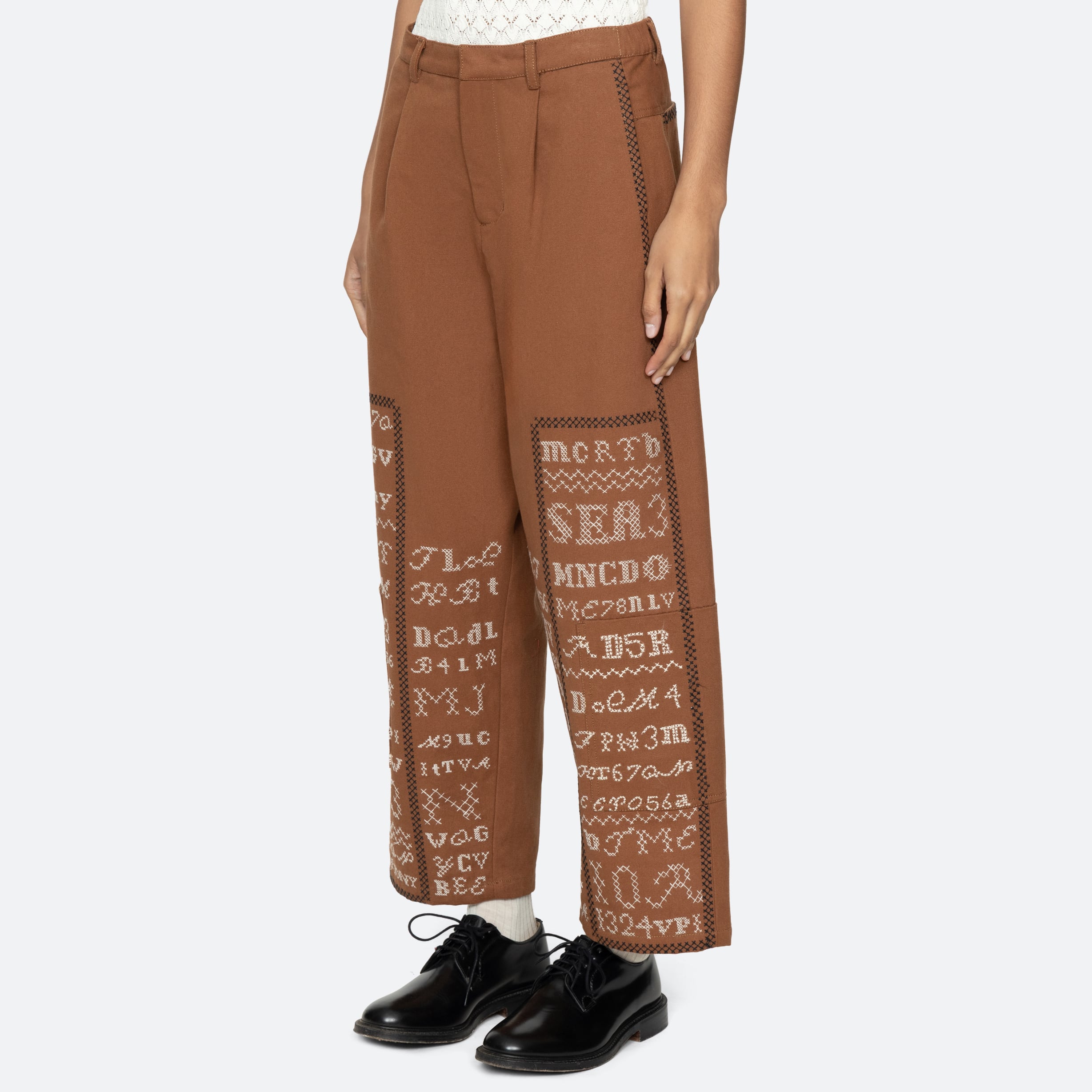 SEA SEA NY KIT EMBROIDERY PANTS COGNAC