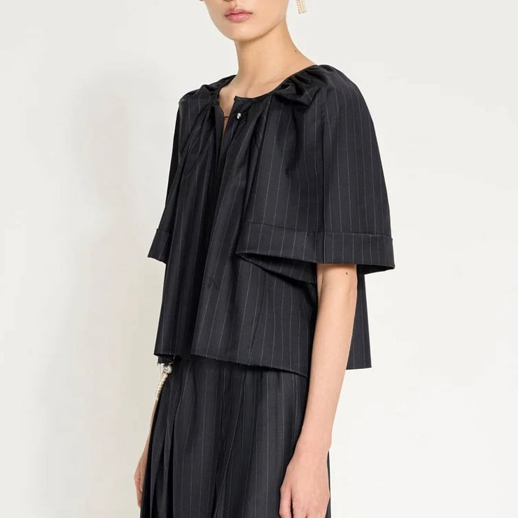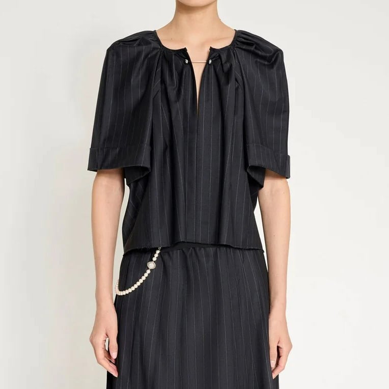 Nackiyé GRAND BAZAAR SHORT SLEEVE TOP CHARCOAL STRIPE