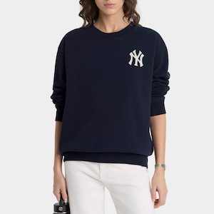 NYヤンキースとコラボしたパッチ付クルーネックスウェット。