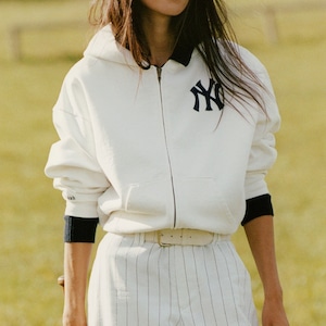 Sporty&Rich Heritage Yankees Serif Zip Hoodie WHITE