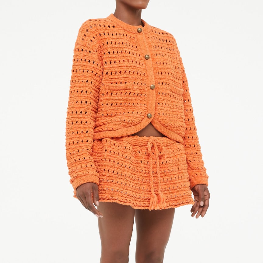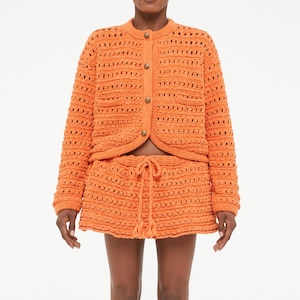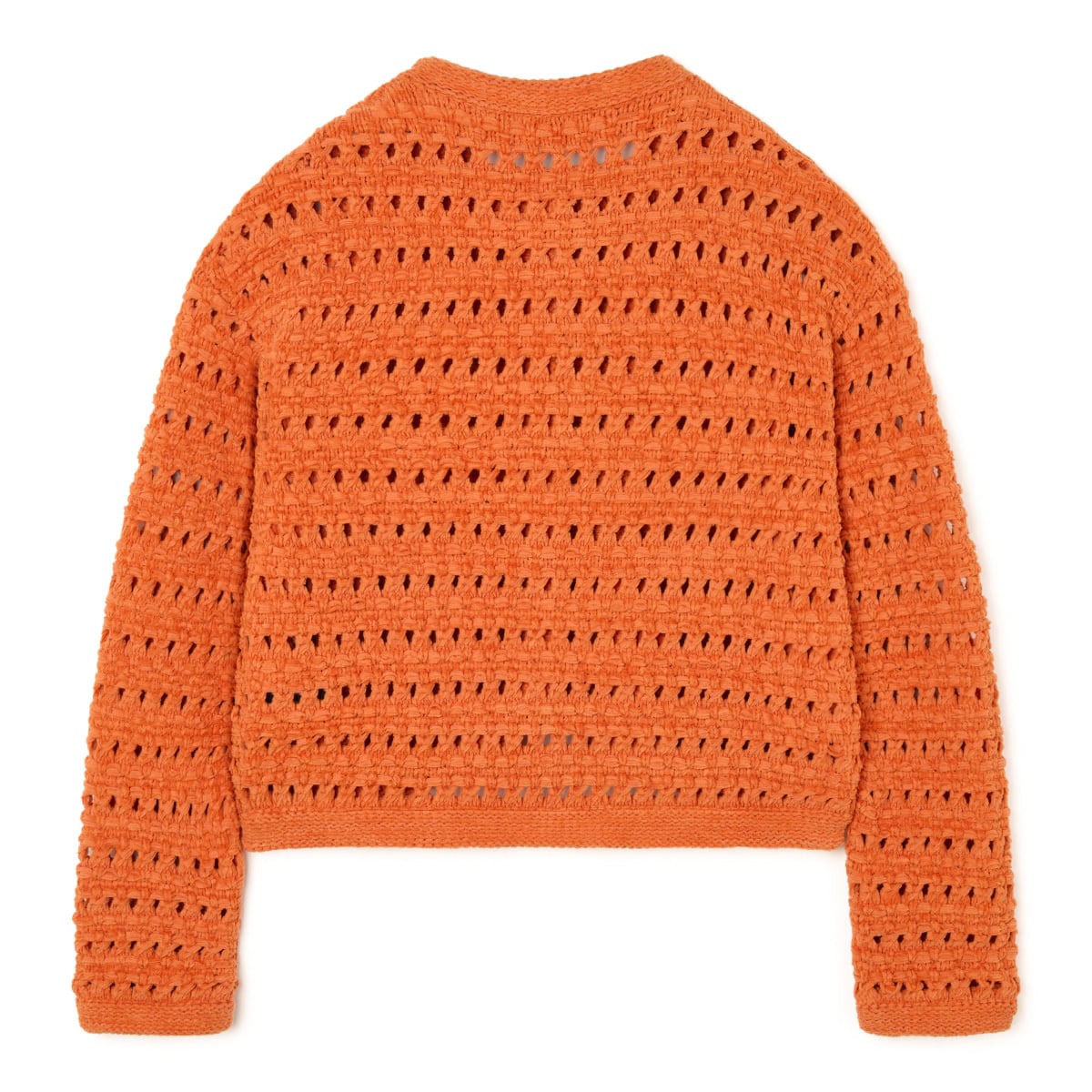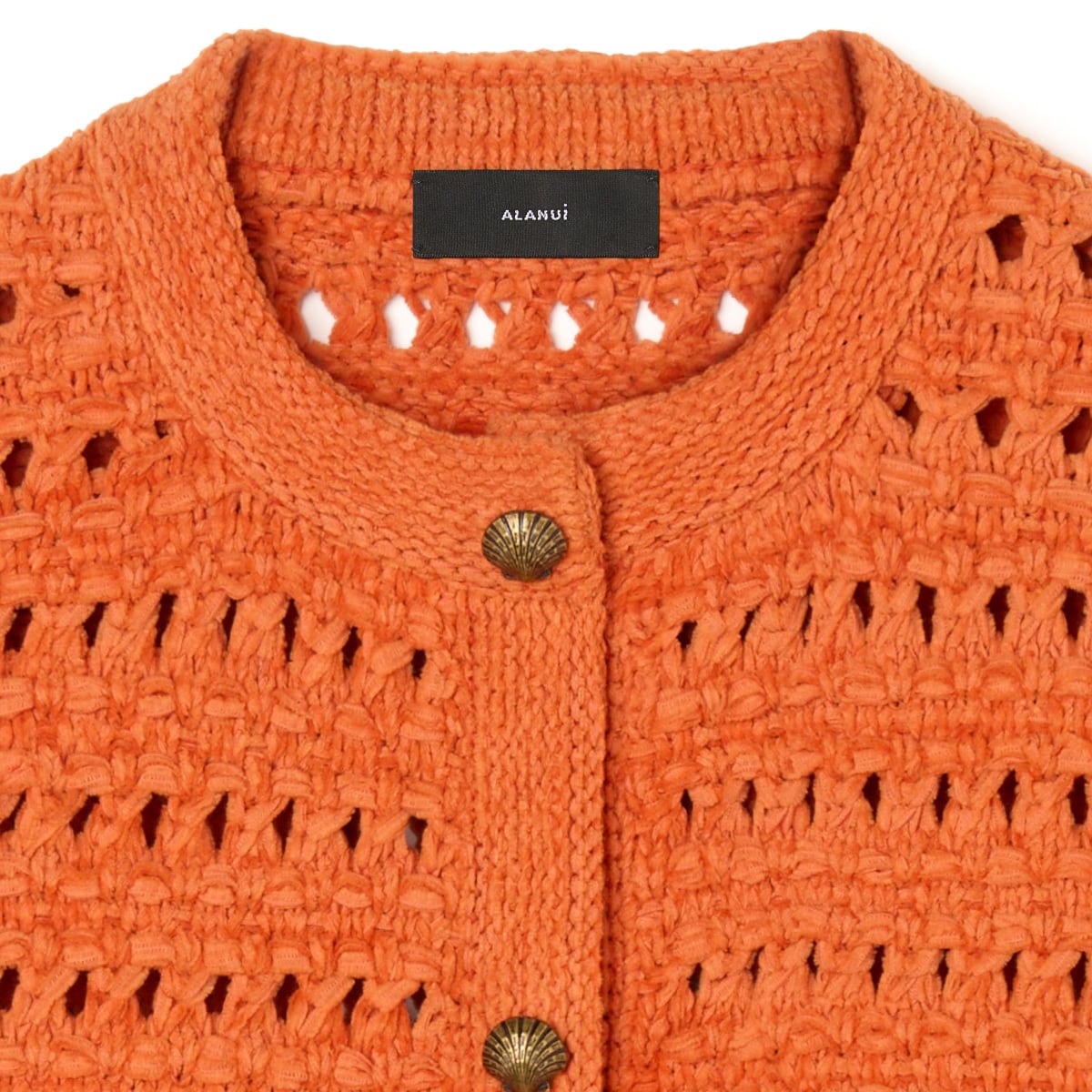 貝モチーフの金ボタンがなんとも可愛らしいクロシェット編みニットジャケット