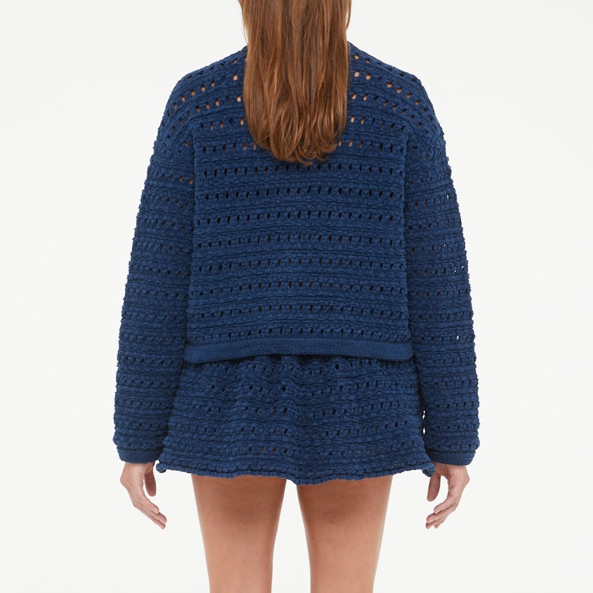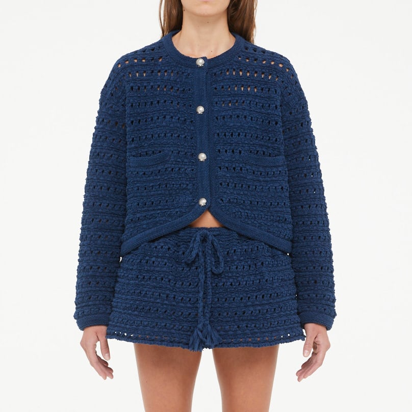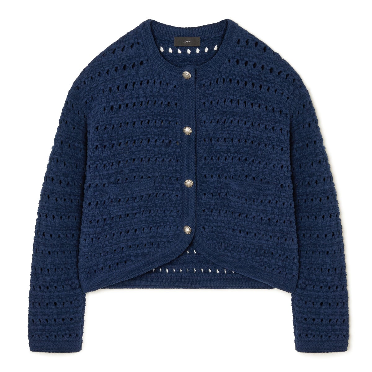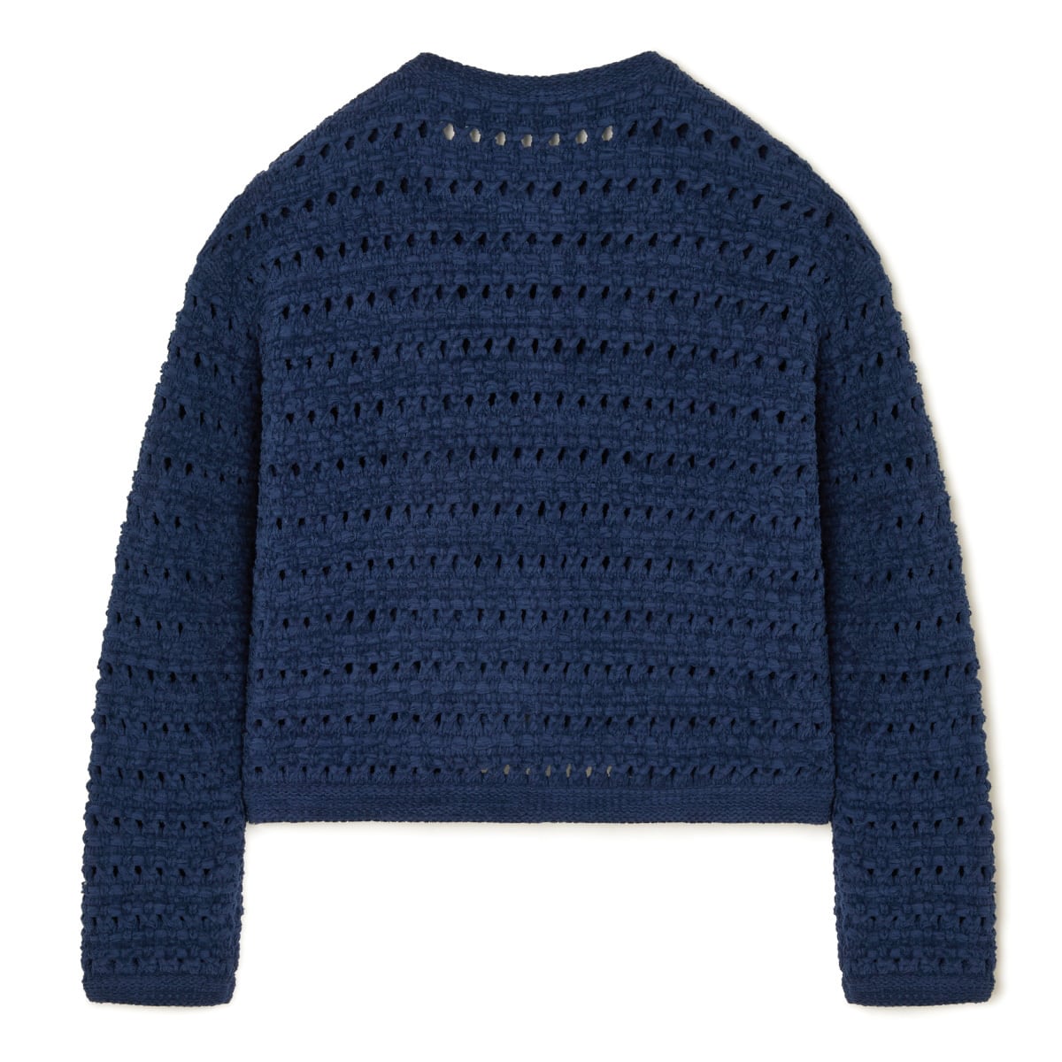 貝モチーフの金ボタンがなんとも可愛らしいクロシェット編みニットジャケット