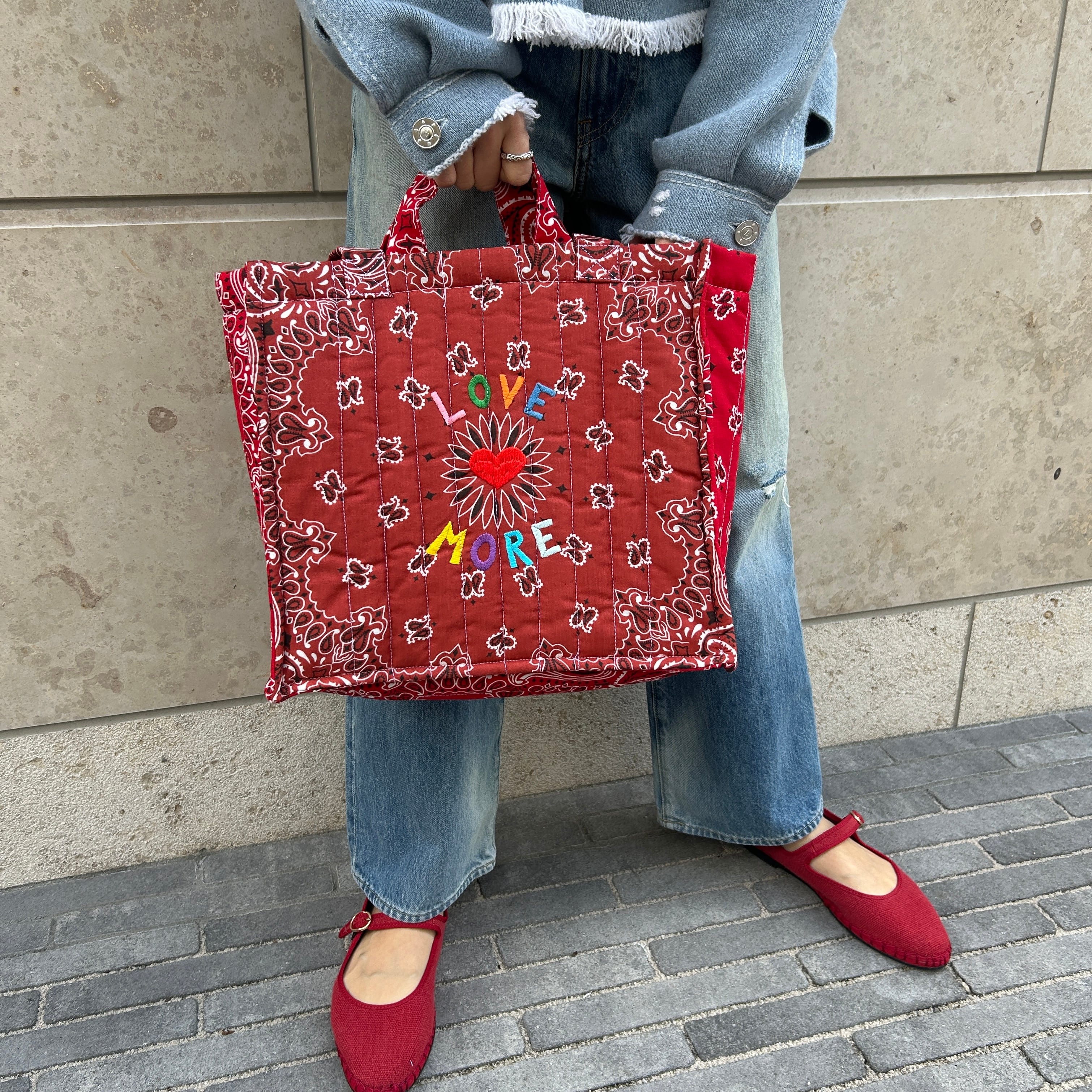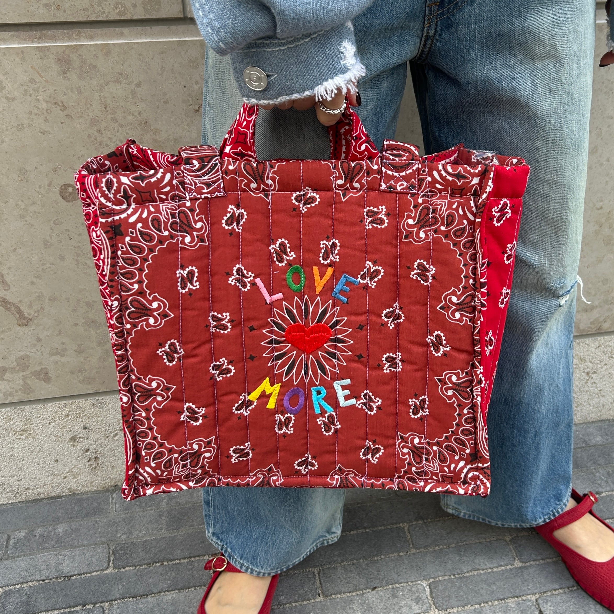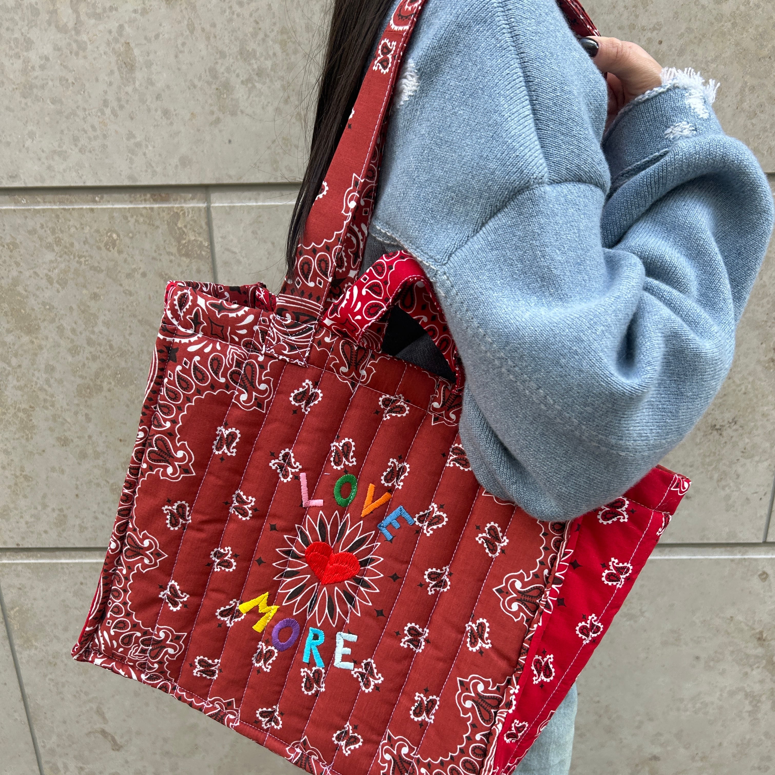 Quilted Medium Cabas Tote”LOVE MORE”