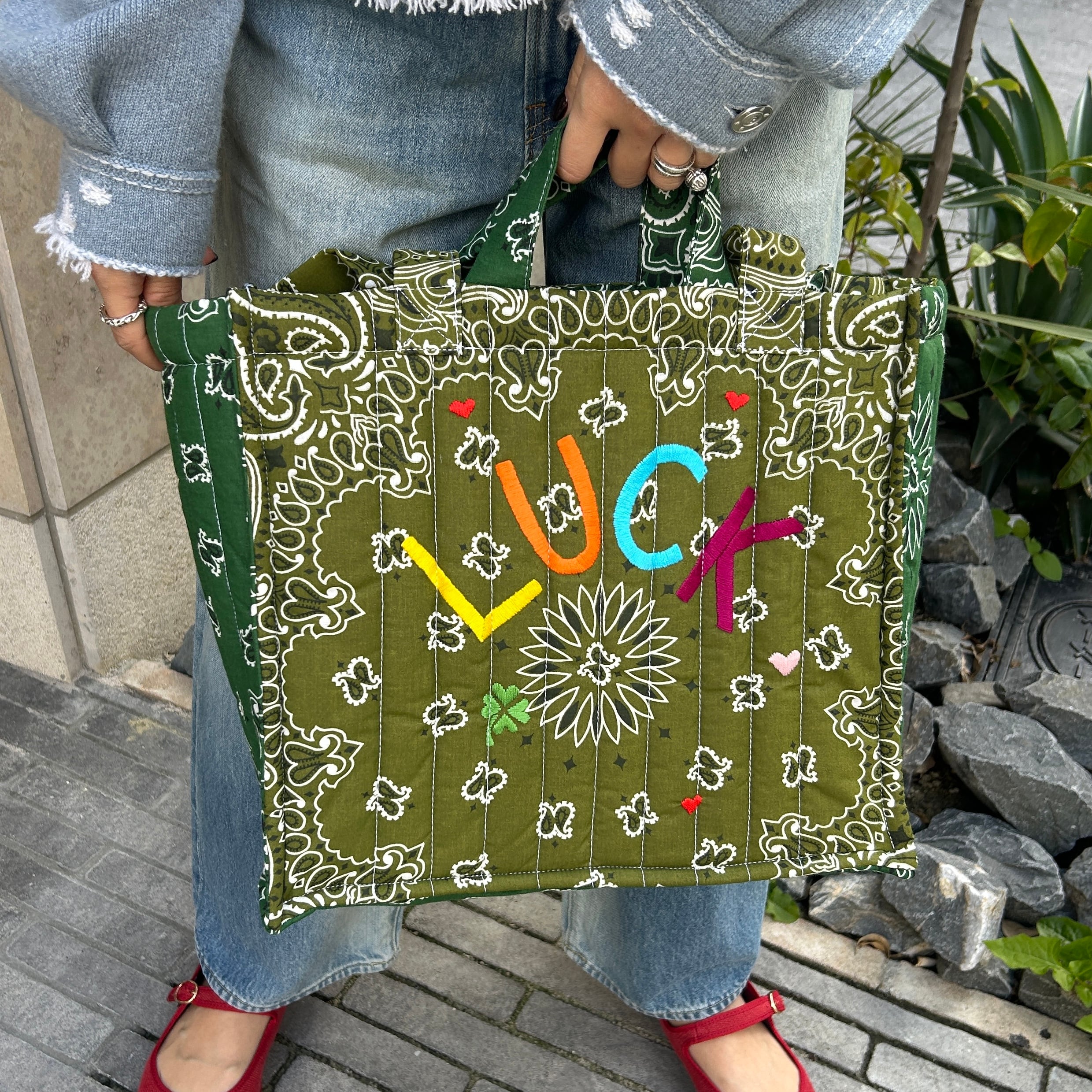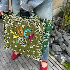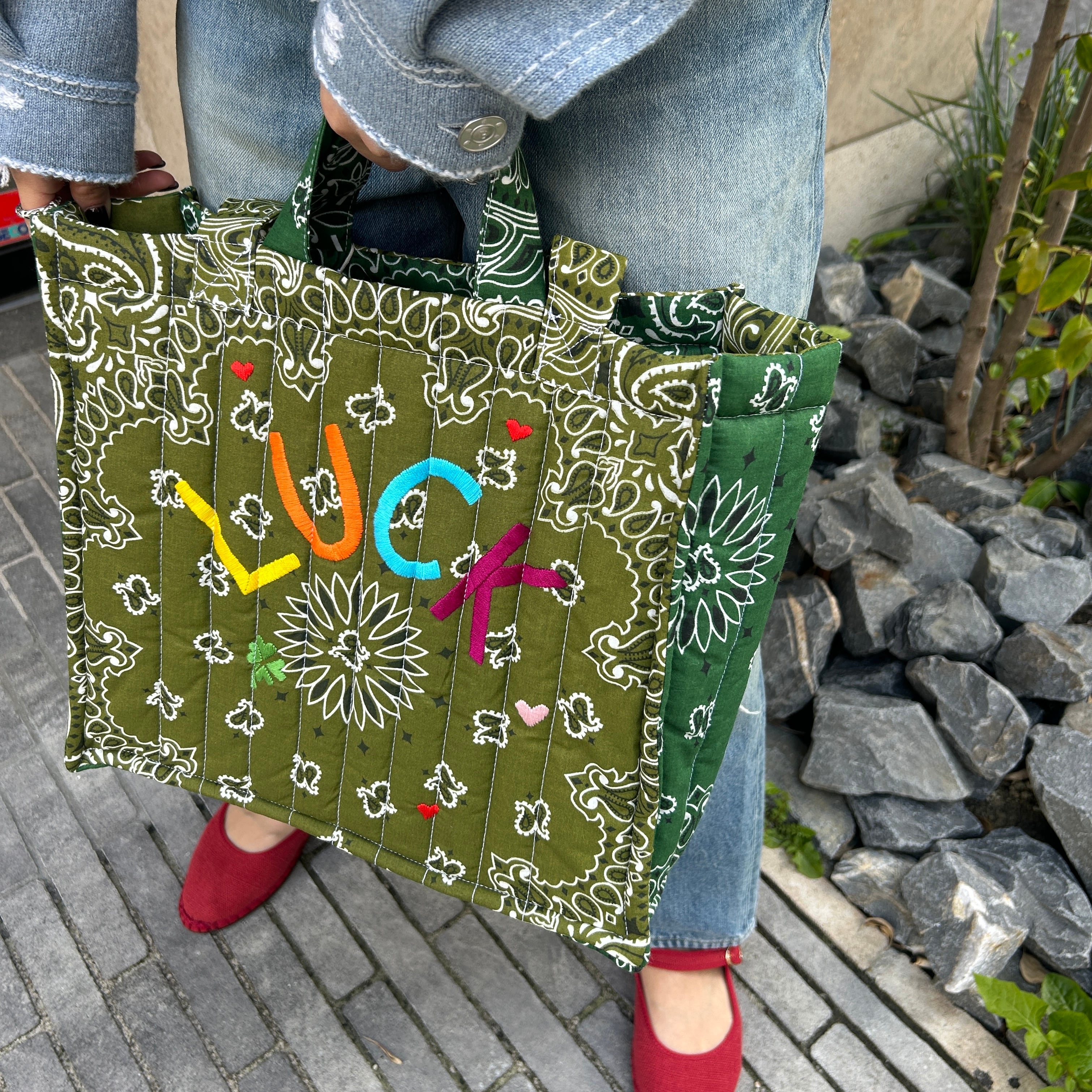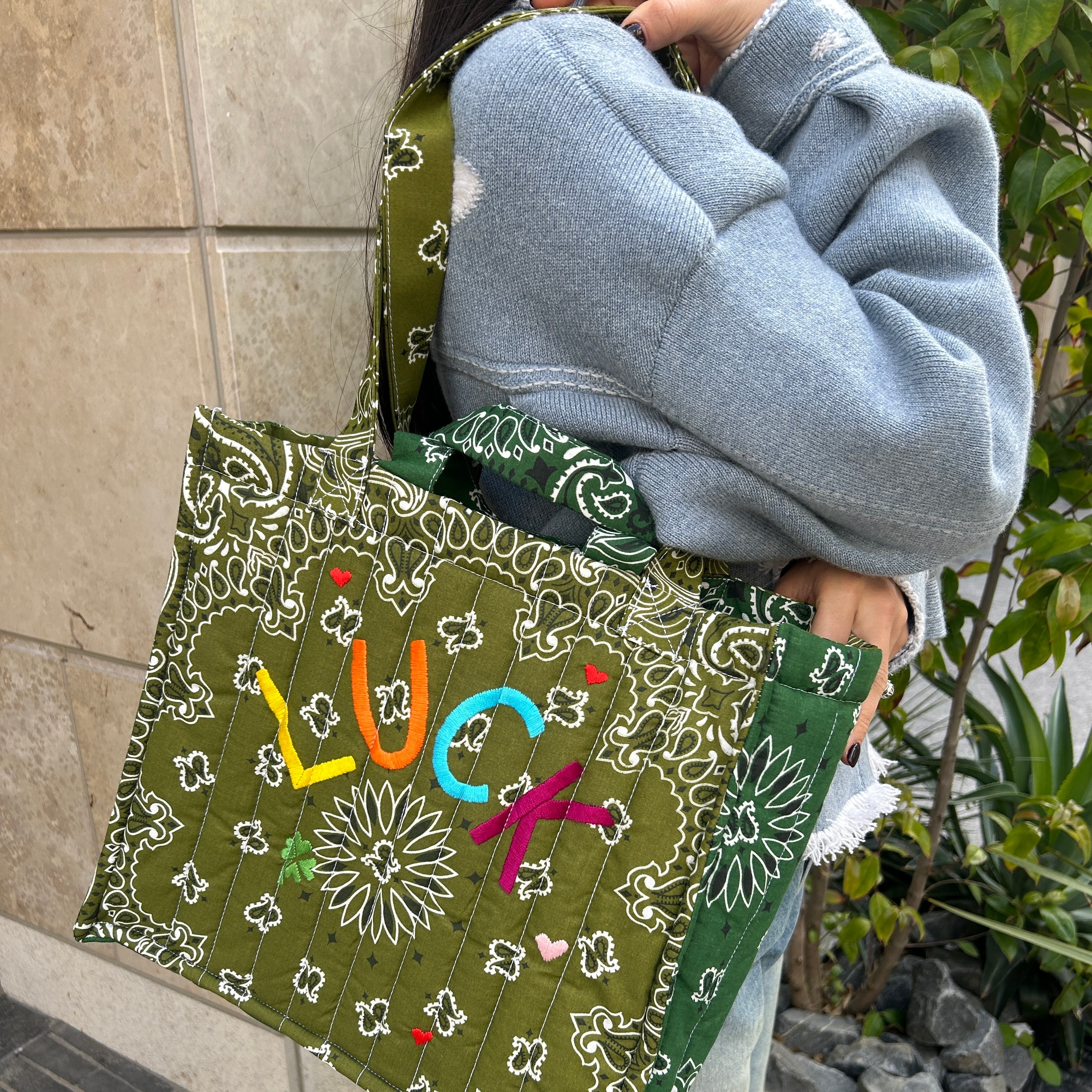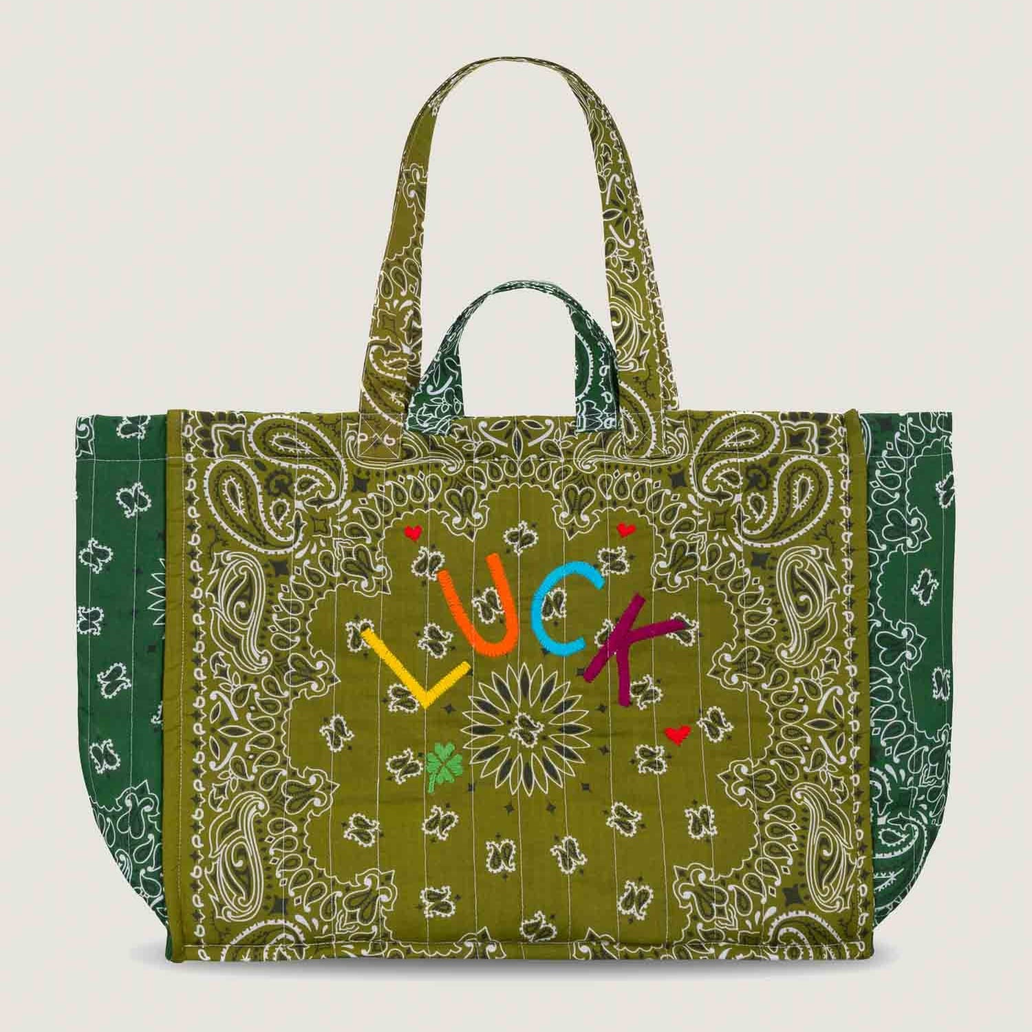 Quilted Medium Cabas Tote”LUCK”