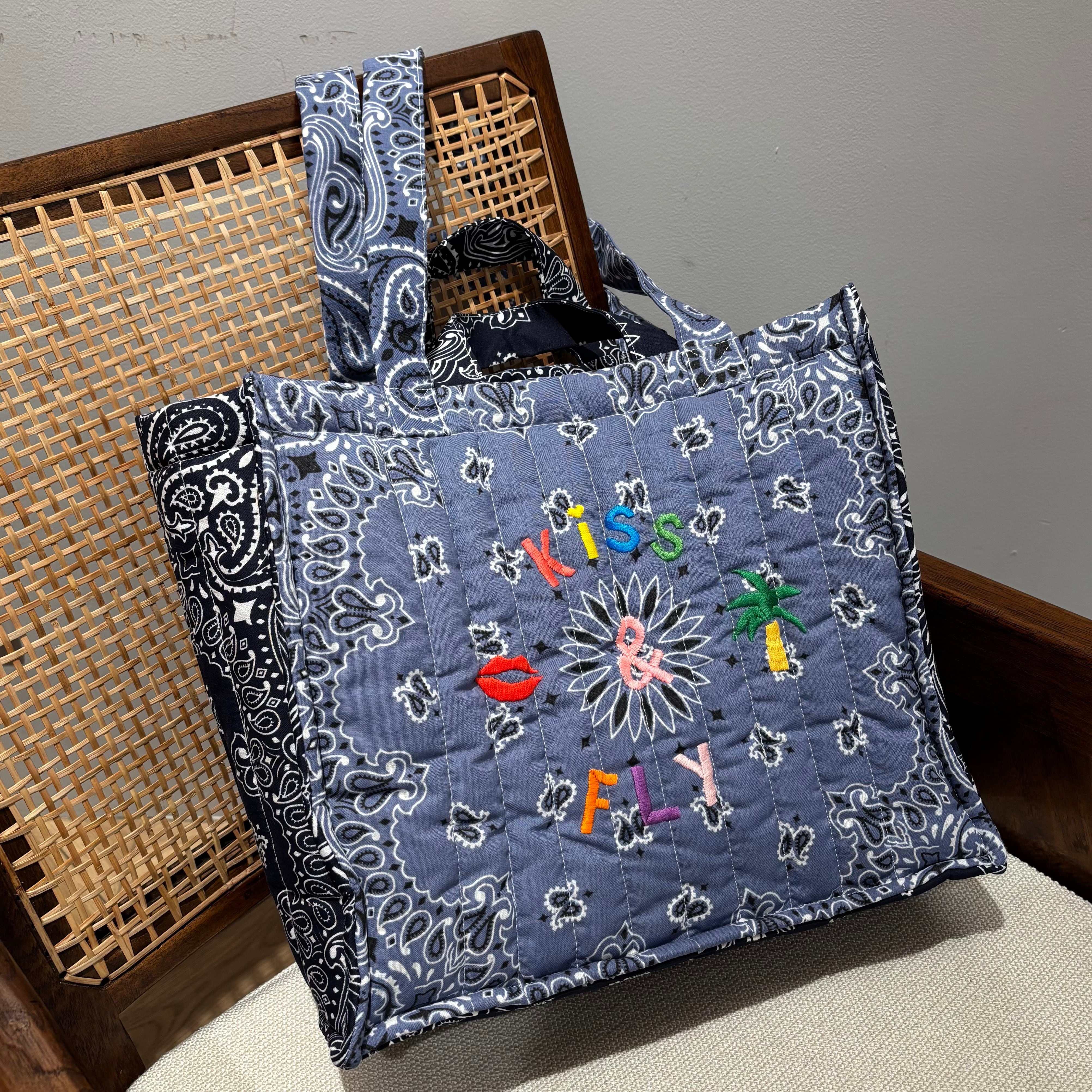 Quilted Medium Cabas Tote”KISS&FLY”