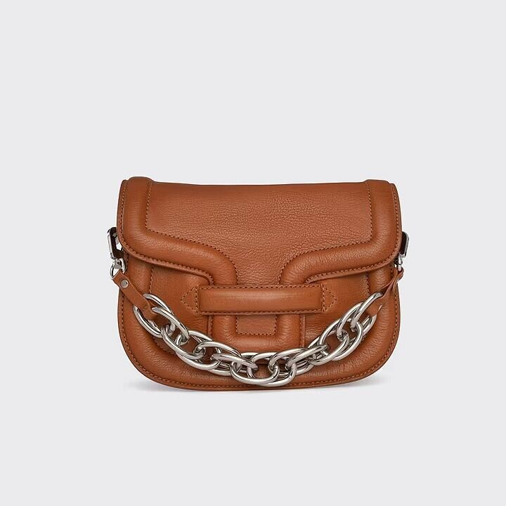 チャンキーなチェーンハンドルが付属した2つの表情を楽しめるハンドバッグ。
