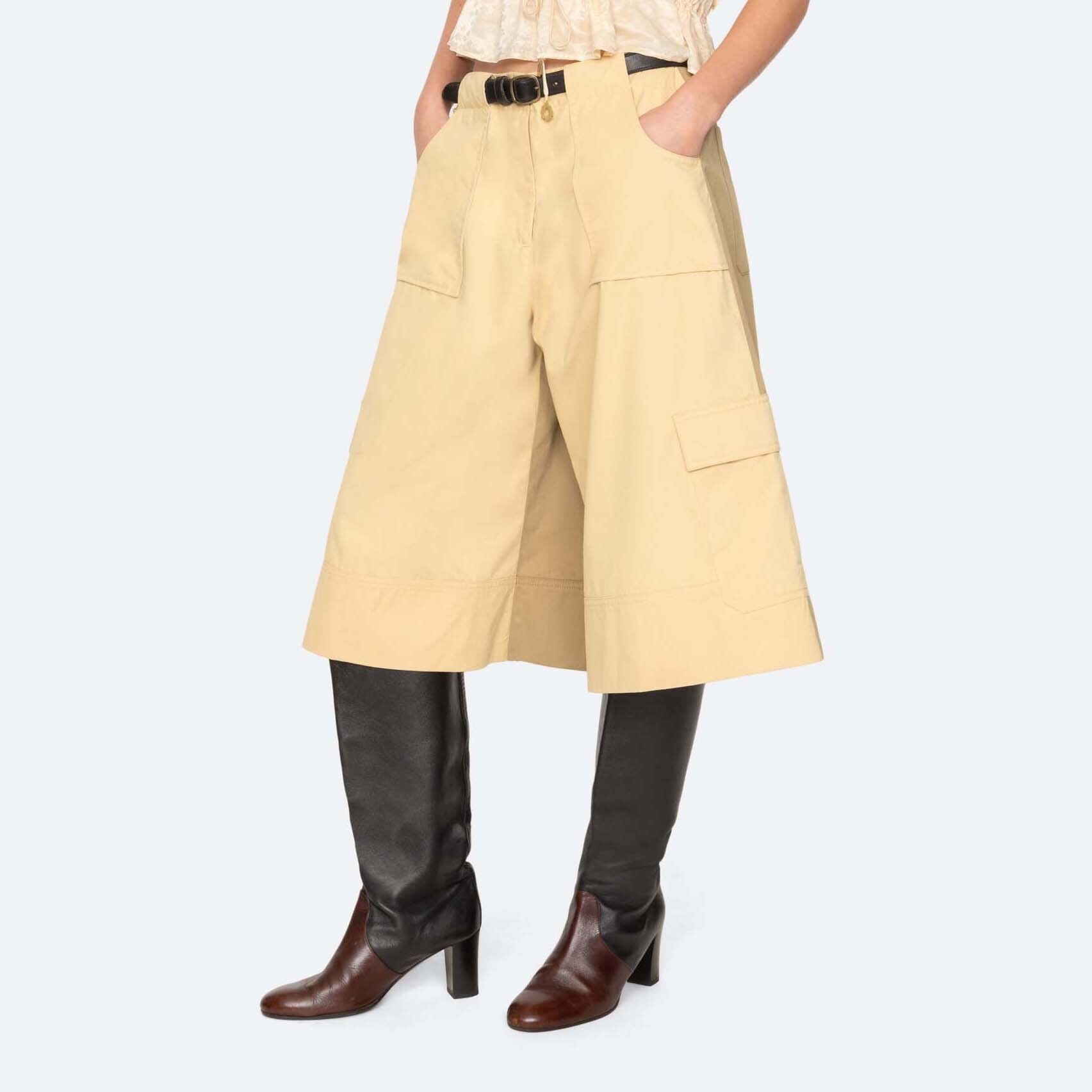 ベルト付きコットンカーゴキュロットパンツ