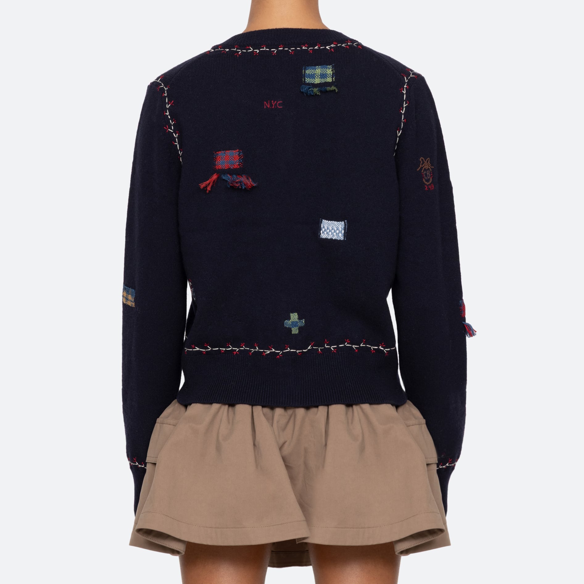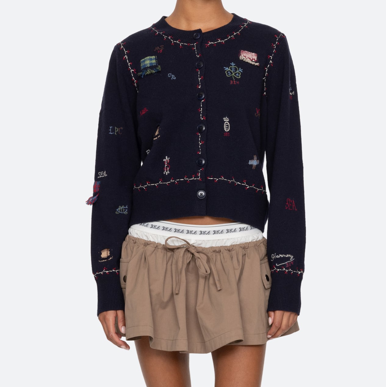 SEA NY CLAIRA EMB KNIT CARDIGAN NAVY