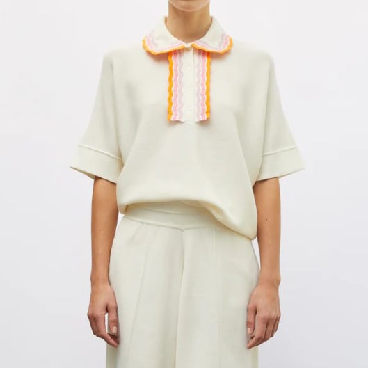 レーヨンとコットンのミックスヤーンニットは、シルクのような光沢感と優しい肌触りが特徴。体に滑り込むようなホールド感とシームレスの仕上がりは「molli」のピュアでタイムレスなデザインの代表です。