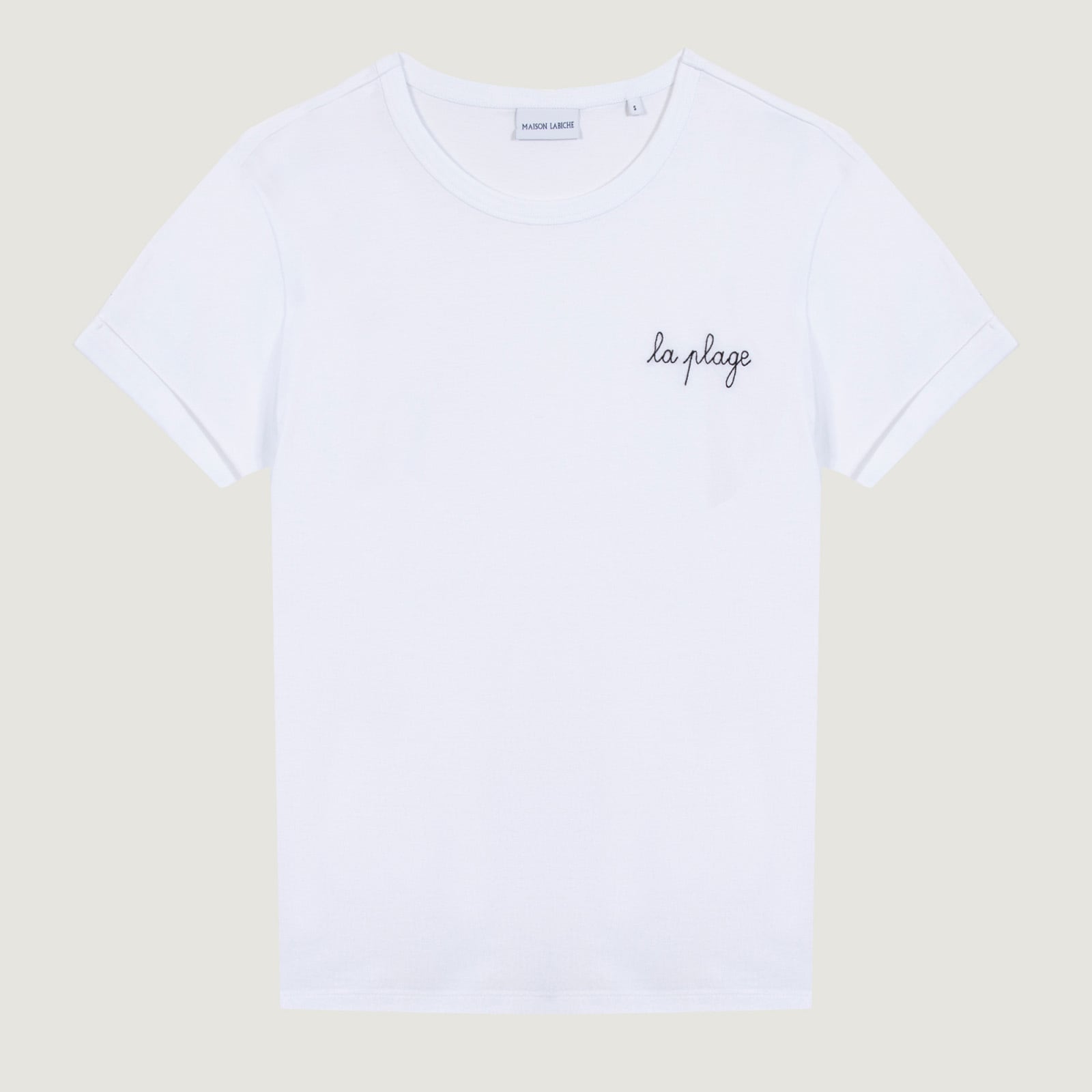 刺繡のワンポイントが可愛らしいコットンTシャツ