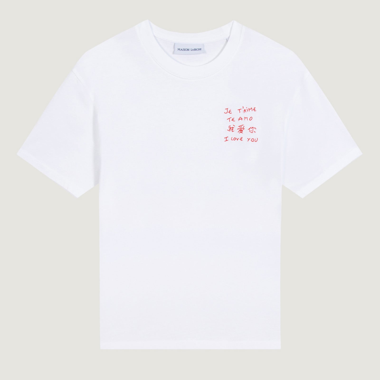 刺繡のワンポイントが可愛らしいコットンTシャツ