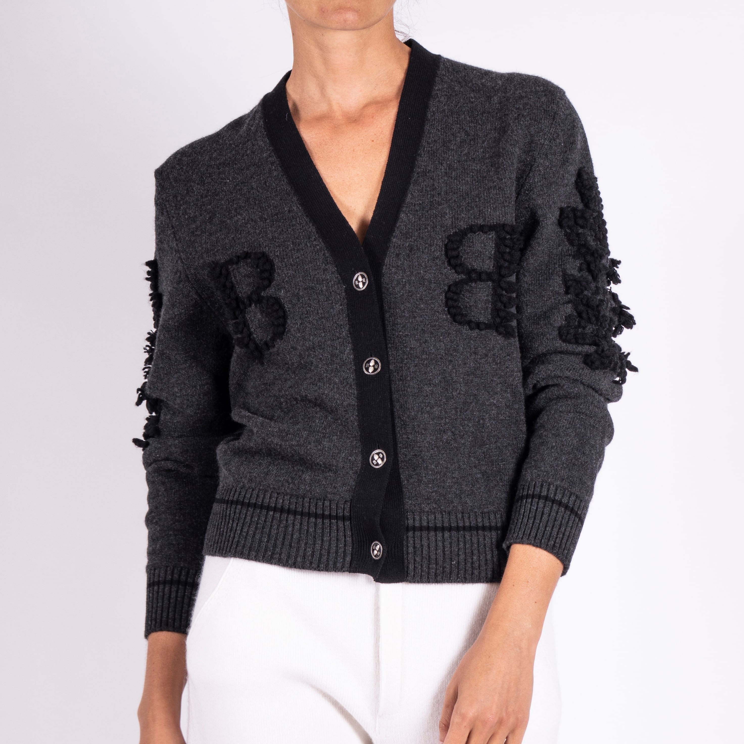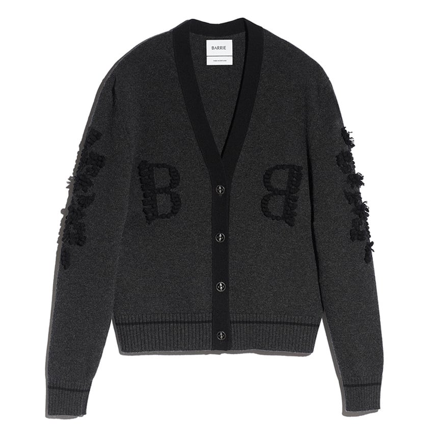 BARRIE THISTLE LOGO CASHMERE CARDIGAN CHARCOAL BLACK