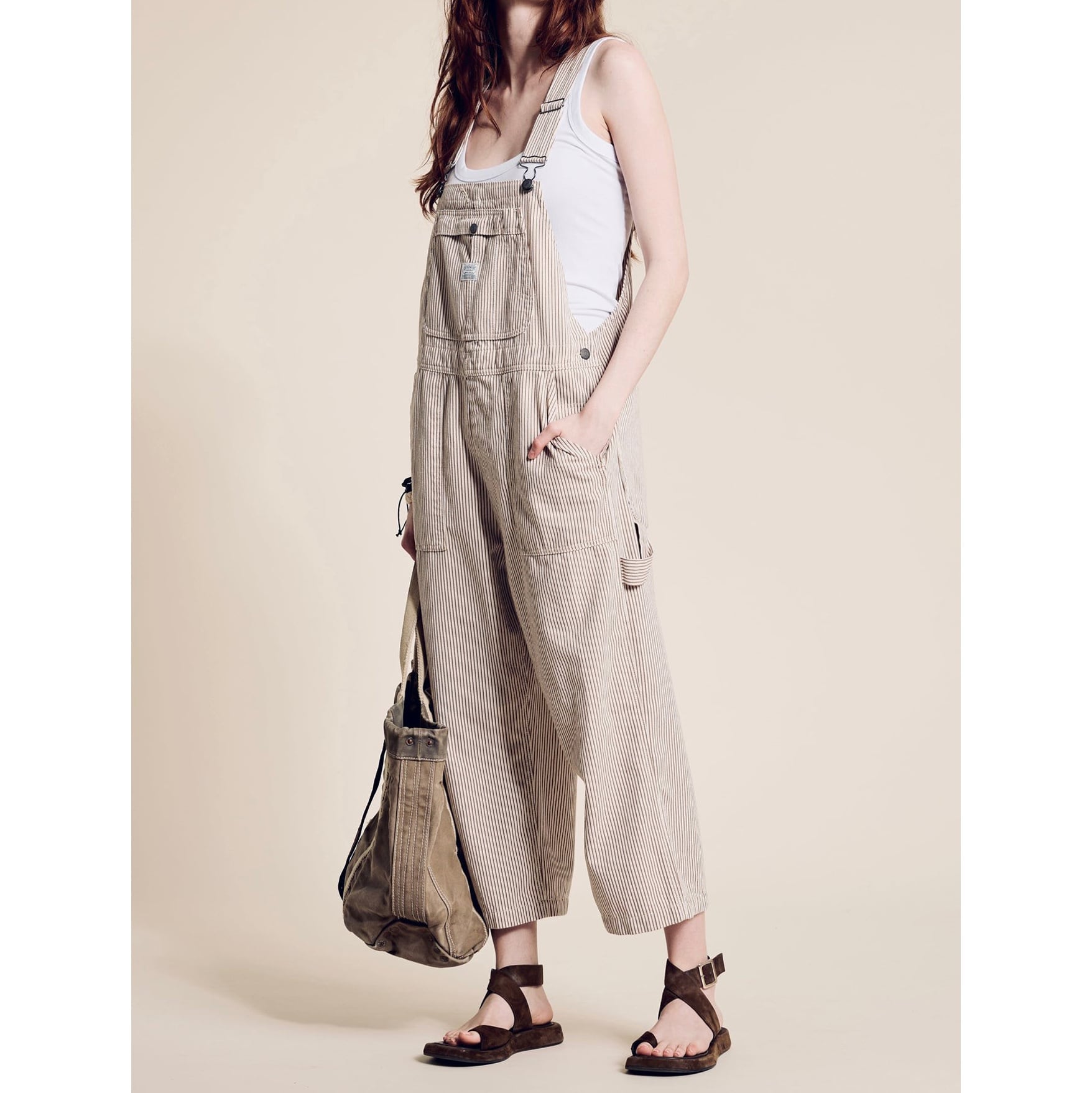 DENIMIST RELAXED OVERALL BROWN RAILROAD STRIPE
